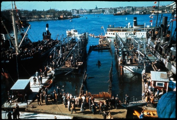 Первые 600 метров “Васа” прошел с помощью якоря. На шлюпке отвозили якорь, бросали его, корабль подтягивался, якорь вытаскивали, отвозили дальше, опять бросали… Затем были подняты четыре паруса из десяти (шесть так и остались лежать в трюме, они-то сохранились до наших дней — это самые старые паруса в мире).