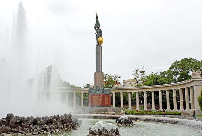 И вот где-то на середине истории конфликта Марии-Терезии и Екатерины II мы неожиданно набредаем на огромный мемориальный комплекс. И начинаем протирать глаза. Потому что в центре композиции – советский солдат. А уж советского воина от любого другого мы всегда отличим: культурный код - он такой. Однако мы были немного удивлены: мы ж не Болгарии, а в Австрии, которая ну очень далека была от стран Варшавского договора, да и в особой симпатии к СССР замечена не была. А тут такое. В общем, стоим, смотрим, обсуждаем.