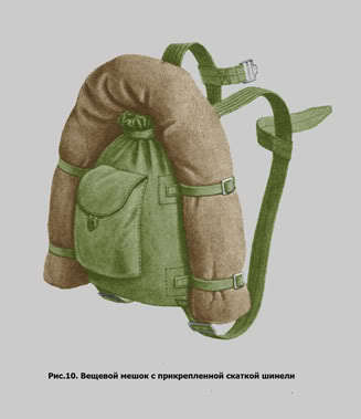 Кстати сухпай мы в вещмешках не хранили,а получали отдельно.Еще вовнутрь вещмешка клали мыльнорыльные,закрученные в полотенце,и можно было положить пару конвертов для писем.