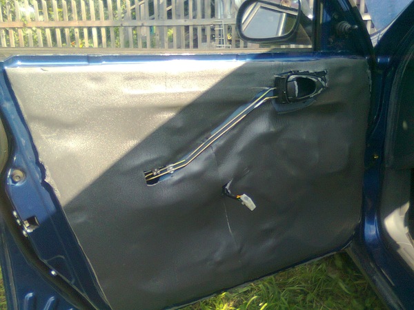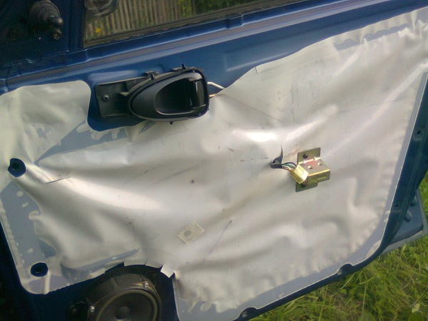Затем после кучи мата и крови с рук, после разглаживания, приступаем к заделыванию технологических отверстий двери. Сделать это нужно, чтобы создать подобие ровной однородной поверхности двери — лучшее звучание динамиков и отличное шумоподавление!