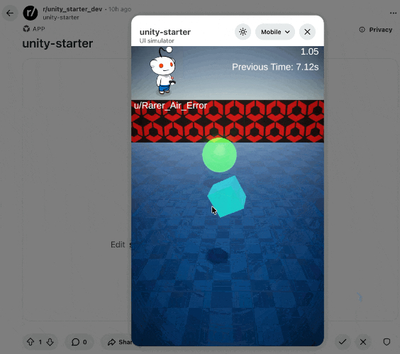 Работает со стандартным Unity Web экспортом, но с несколькими параметрами, настроенными для Devvit. После экспорта игроки смогут запускать и играть в вашу игру прямо в сабреддите или непосредственно из своей ленты новостей.