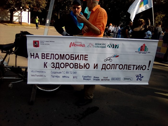 Геннадий Суздальцев уточняет, что по приглашению одного из организаторов фестиваля – МИИРЦ, веломобильные команды «Инватрайк» и «Веломобильный центр» приняли участие в мероприятии со своими веломобильными транспортными средствами. Народу на фестиваль пришло много.
