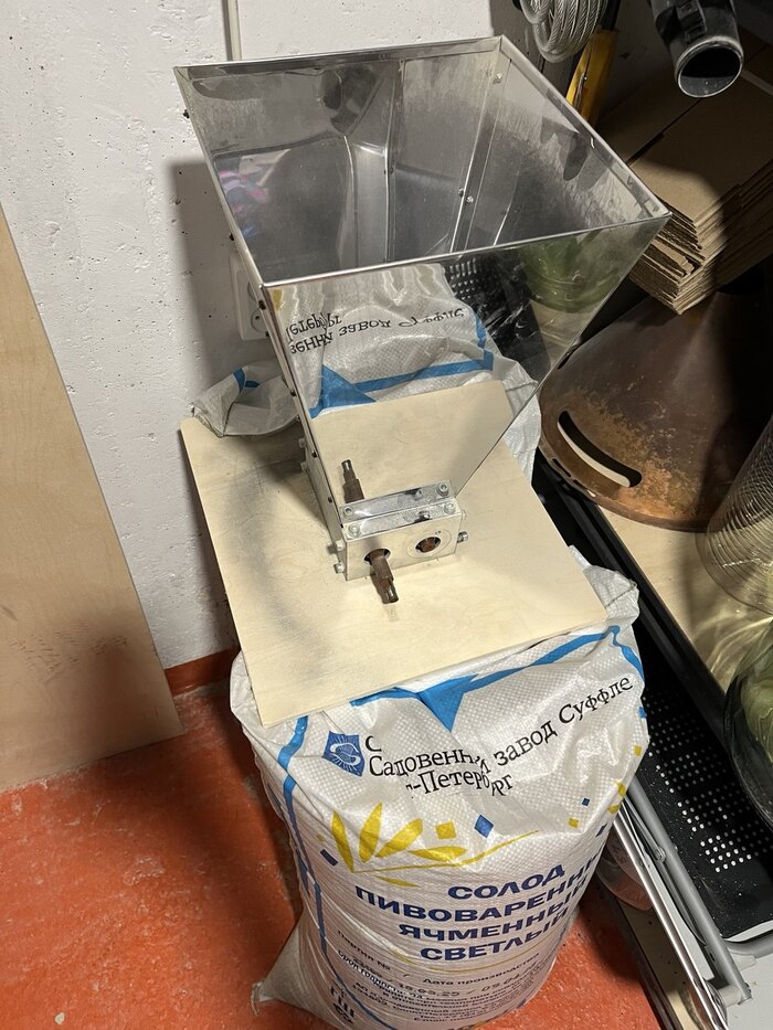 На утро следующего дня сливаю старую воду и заливаю 70л новой воды и включаю нагрев. На нагрев у меня уходит около 85 мин, что позволяет мне неспеша спуститься в подвал, намолоть 20 кг солода, подготовить ванную комнату к затиранию, убрав всё что можно испачкать, т.к. при засыпи солода будет много пыли и выпить кофе.
