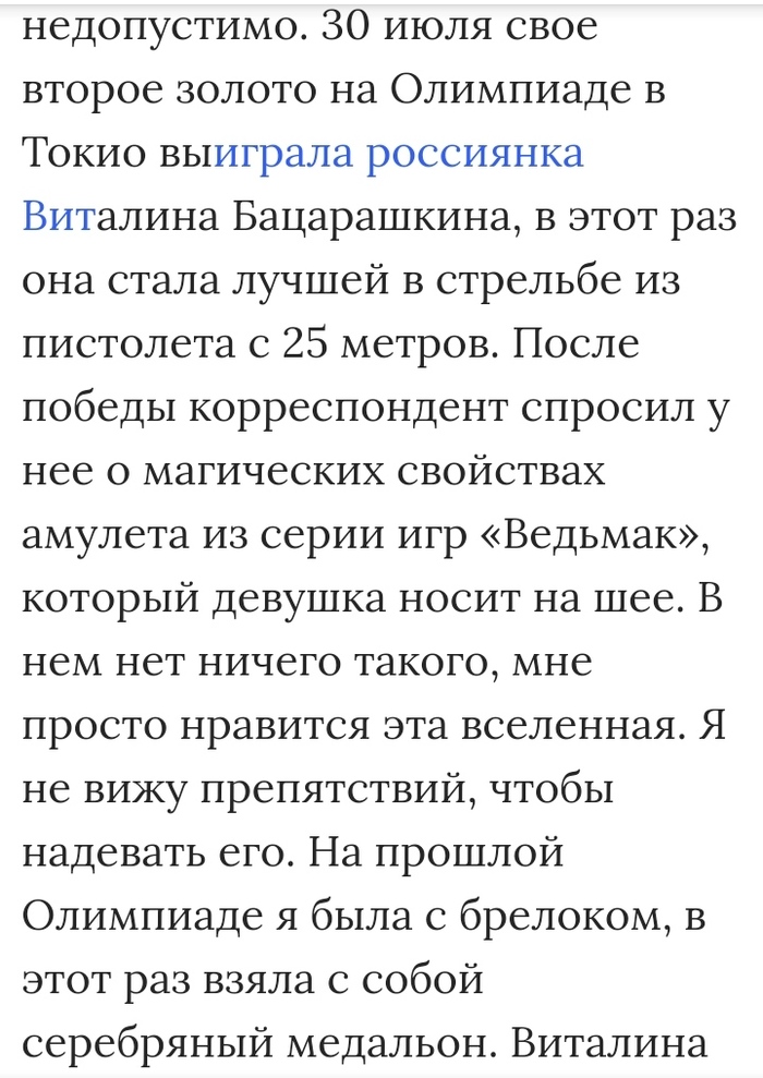 Виталина Бацарашкина – главная героиня сборной России на летних Олимпийских играх-2020. В пулевой стрельбе из пневматического пистолета она завоевала два золота в личных соревнованиях и бронзу в командном турнире. Но милая снайперша с пряничным обаянием стала любимицей фанатов не за фамилию или заслуги в Токио-2020.