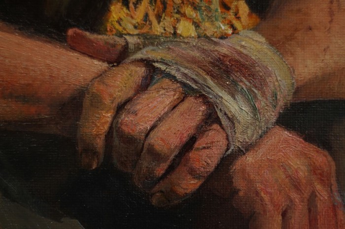 Хочу вам показать картину 2014 года Владимира Киреева из триптиха "Хотят ли русские войны". Данный триптих уже выкладывался, но мне бы хотелось остановится именно на этой картине, по-моему она очень интересна, особенно деталями. Каждый найдёт в ней много особенностей, взять хотя бы то, что воины, изображенные на переднем плане, являются бойцами противоборствующих армий, судя по форме.