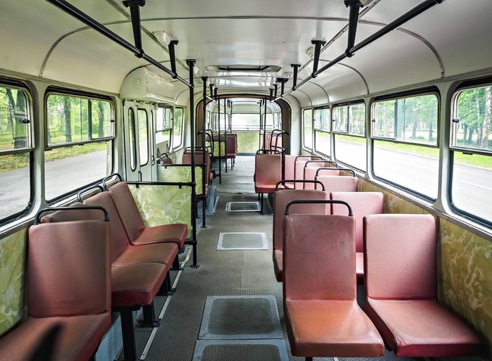 Два пассажирских салона, соединенных тамбуром-гармошкой, были оборудованы четырьмя дверьми. Первая с головы- для выхода, вторая и третья – для пассажиров с детьми, четвертая – общий вход для всех. Естественно, порядок посадки в час пик никто не соблюдал.