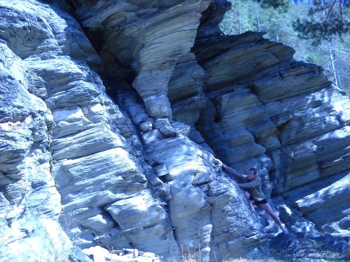 Я же, абсолютно непонимающий конфликта, только что вновь обретя уже «списанного» друга, бросаюсь за ним в лес. Очень быстро поднимаюсь по взлетающей горе, через метров 300 вскарабкиваясь на отвесный уступ, где следы друга прерываются. Первая мысль – как это я его не догнал, следом – «хана», убился… Уступ обрывается 30-метровой отвесной пропастью, пытаюсь разглядеть внизу сорвавшегося друга (в мыслях мешанина о самовыпиле). В голове мысли – быстрее дюльфернуть (спуститься на верёвке) или обогнуть скалу на катамаране? Растянувшиеся в вечность секунды, вновь обрушающие надежду и ломающие привычный мир, перетряхивающие всё нутро и буровящее сознание…