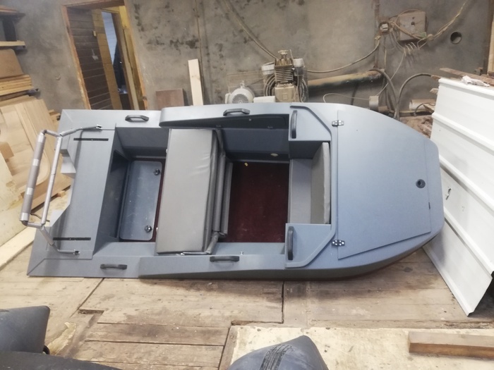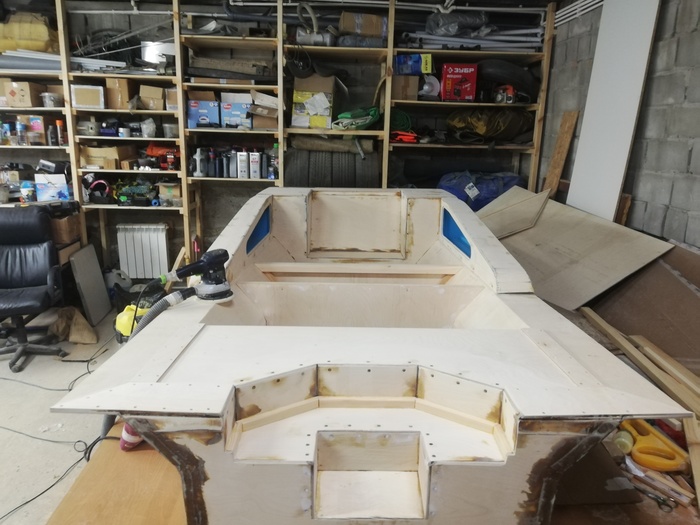 Зимой 24го года решил купить катер,чтоб нам с семьёй комфортно перемещаться по реке. Поговорил с супругой, она одобряла мою идею, но когда я сказал что для этого ей придётся найти вторую работу, посмотрела, взяла сковородку в руки и я пошёл в гараж. Нужно было решать проблему бюджетно. У меня была обычная ПВХ лодочка и немного фанеры. Долго смотрел в интернете вариант и ничего подходящего для себя не нашёл. Пришлось изобретать что-то своё.