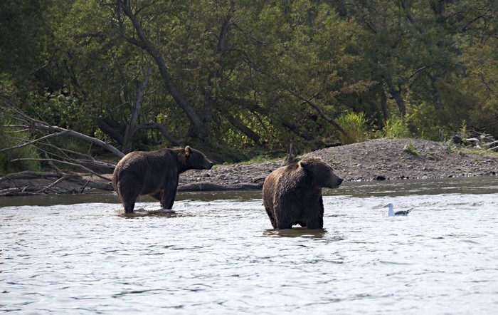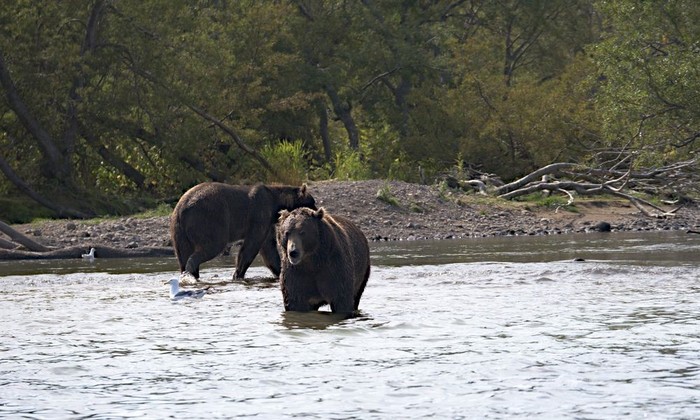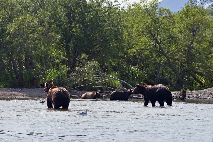 тут небольшие группы мишек ловят рыбу, на нас ноль внимания, они сосредоточенно вглядываются вглубь воды