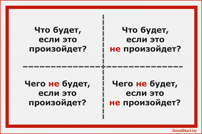 Для этого есть отличная техника — «Квадрат Декарта». Это простой, но эффективный способ сделать трудный выбор.