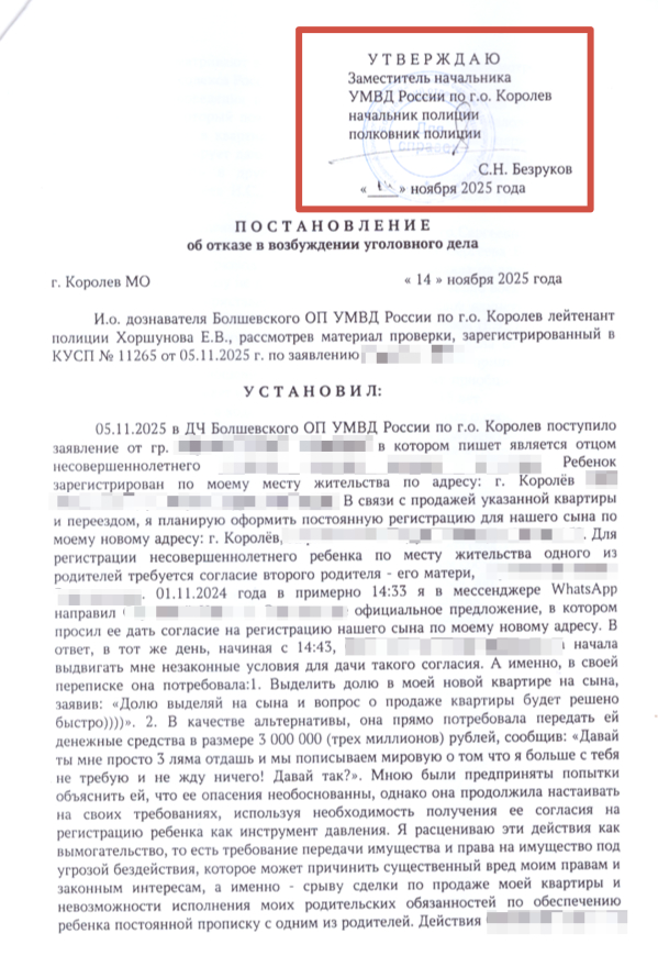 Постановление является итогом "заказной" проверки. Совокупность нарушений указывает, что цель была не установить истину, а любой ценой обосновать отказ, следуя изначальной установке инспектора ПДН о "гражданском споре".