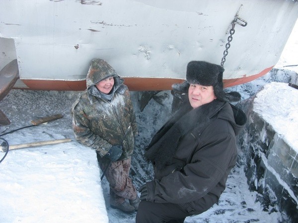 В поселке Жатай находится самый большой судоремонтный завод в республике. А еще там очень холодно. На местной базе вмороженными в лед зимуют 120 судов. Когда весной лед начнет таять, первыми в рейс выйдут буксиры. Чтобы заранее освободить им винты, проверить техническое состояние, что-то оперативно заменить, и нужна выморозка.