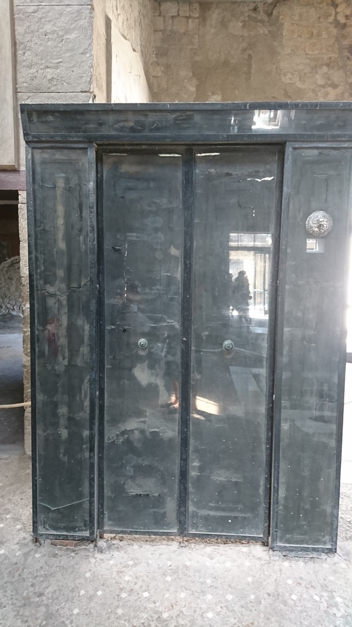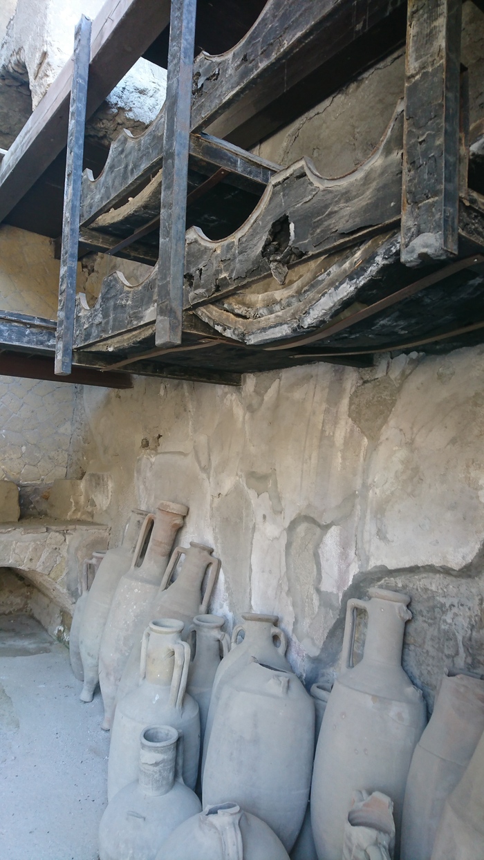 Этот деревянный шкаф сохранился после извержения Везувия в 79 году н. э.. В связи с особенностями воздействия пирокластического потока многие деревянные предметы интерьера (кровати, стулья, шкафы) в Помпеях и Геркулануме сохранились в достаточно хорошем состоянии благодаря карбонизации (высокая температура до 700 °C вызывала высыхание органических материалов и превращение их в углеродную форму). Этот экземпляр был обнаружен со всем своим содержимым во время раскопок в 1937 году в Геркулануме. Внутри, как сообщается в дневниках раскопок, были найдены чашки, стаканы, кувшины и горшки.