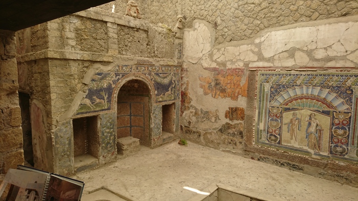 Геркуланум погиб вместе с Помпеями после извержения Везувия в 79 году. Город когда-то был элитным курортом, где располагались резиденции римской аристократии.
