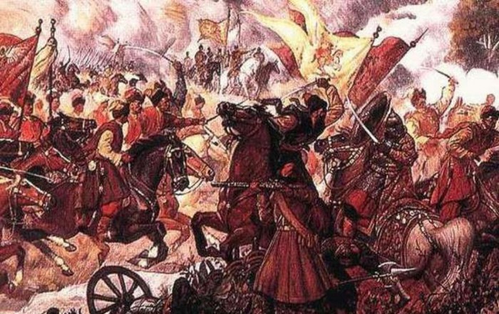 Карта восстания Богдана Хмельницкого. Отмечены границы Украины по Зборовскому договору 1649 (см. верхнюю врезку)