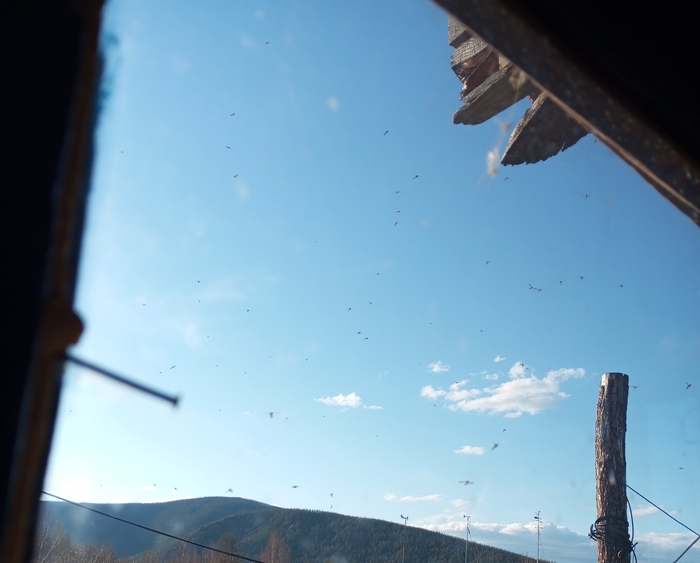 На фото пыталась запечатлить наших кровососов, которые очнулись вечером у летней кухни.