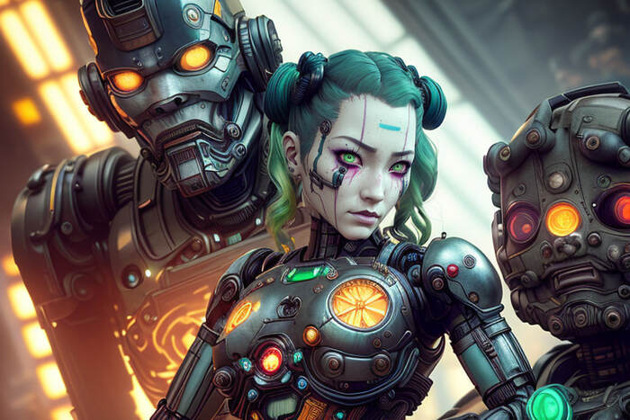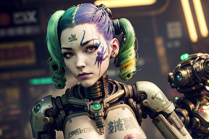 gynoid, 2d, 1980s, anime style --aspect 2:1