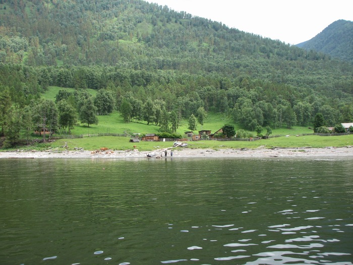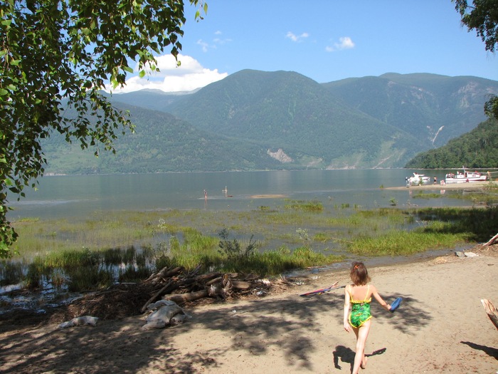 Тот самый ЮБТО, практически единственное место где можно комфортно покупаться, ибо река Чулышман(впадает в озеро) приносит муть и вода прогревается. В остальном же озере вода прозрачная и холодная.