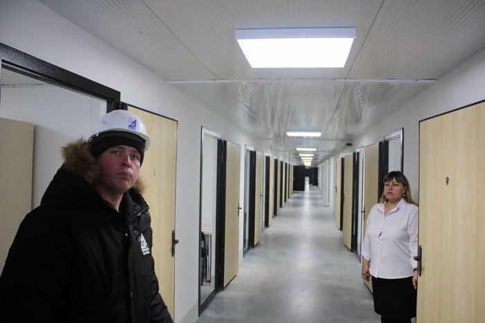Одно из общежитий, уже готовых принять постояльцев, показали журналистам. Внутри тепло, даже жарко - фотоаппаратура тут же запотевает, а пальцы приобретают прежнюю чувствительность.