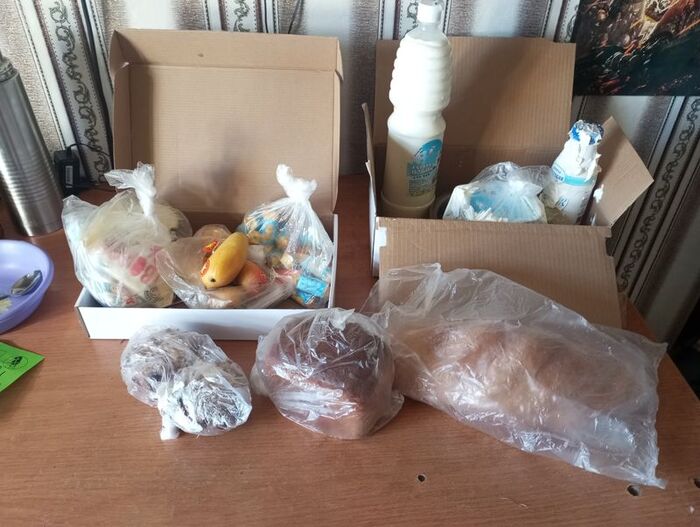И именно эти вкусняшки забыли сразу отдать вертолетчики, поэтому они вернулись и скинули все возле дома в кусты. Показали жестами мол иди там смотри коробочки.