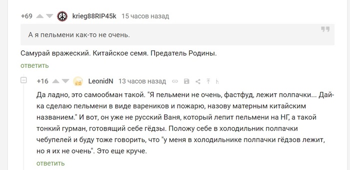 Равиоли, манты, хинкали, гёдза — это не просто «аналоги». Это попытки других народов повторить магию пельменя. Но давайте признаем: оригинал лучше. Потому что только в пельменях сочетается простота гениальности и гениальность простоты. Даже «пельмени-ленивцы» (которые просто раскатанное тесто с фаршем, нарезанное квадратиками) — это высшая форма кулинарного анархизма.