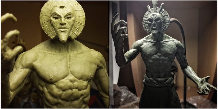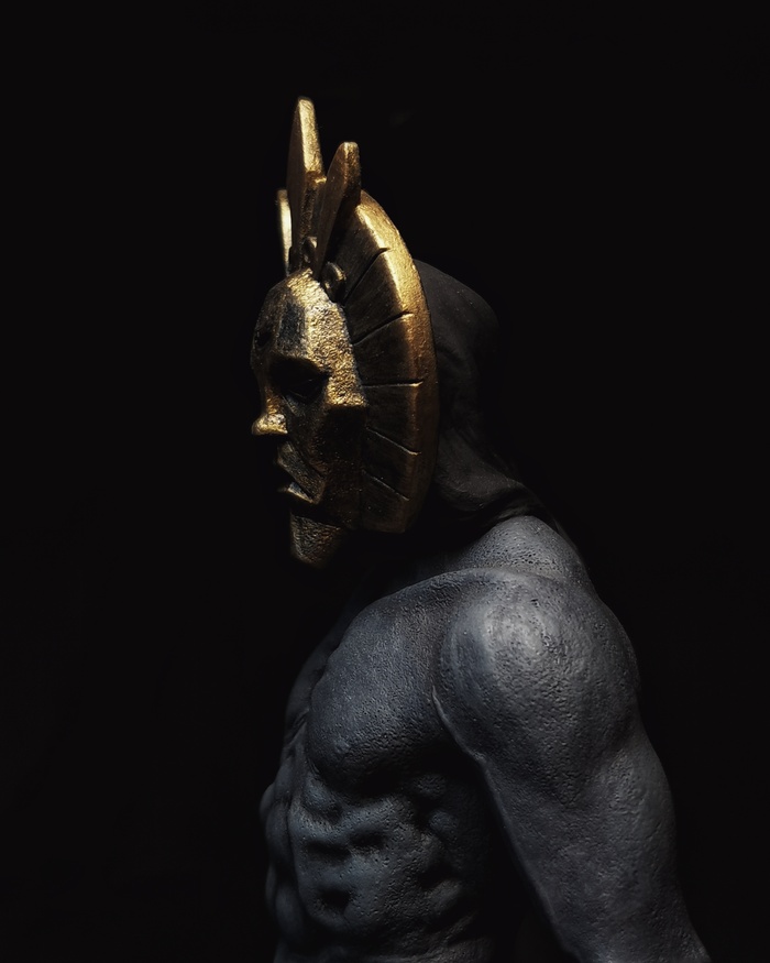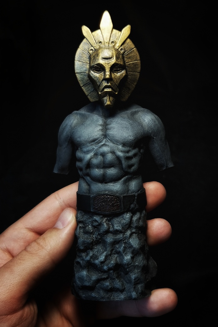 Изначально я его лепил в формате статуи, но недавно пластилиновая мастер-модель оригинальной статуи под весом невзгод совсем накренилась, одна нога треснула, а на другой появилась огромная трещина, поэтому я решил придать работе вторую жизнь, переделав её в бюст