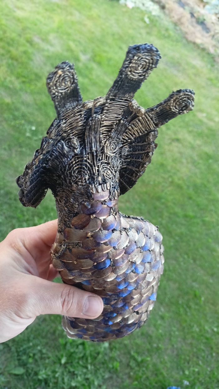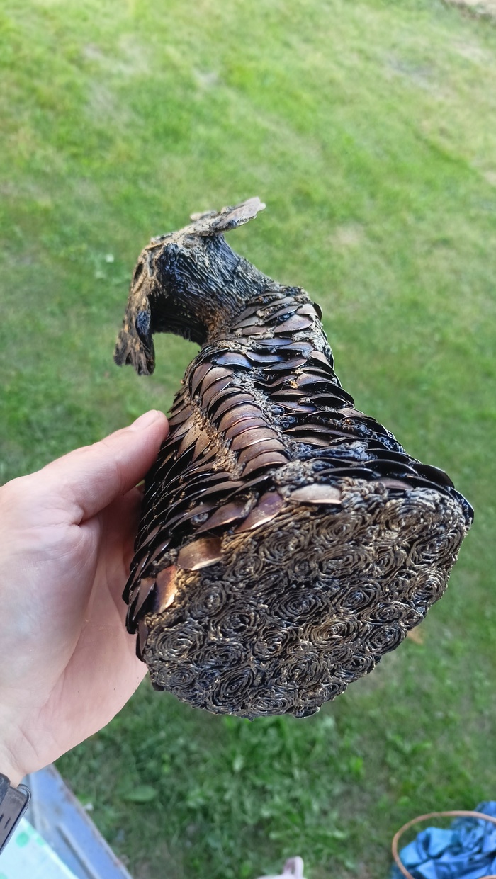 В процессе лепки мне пришла идея немного разнообразить подставку, сделанную под камень