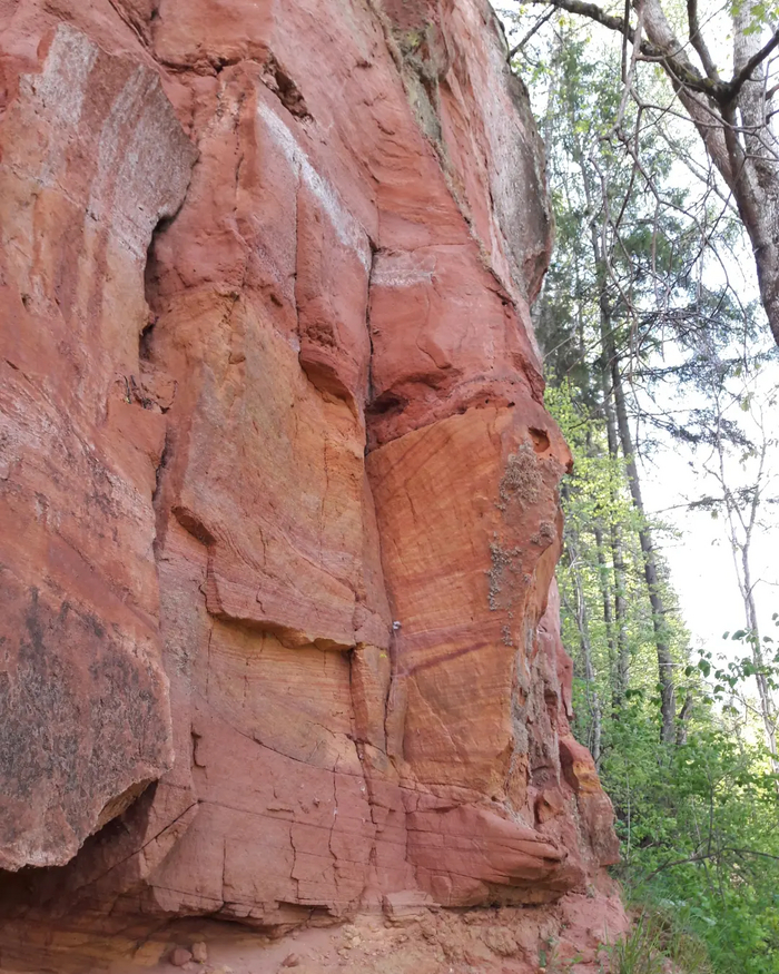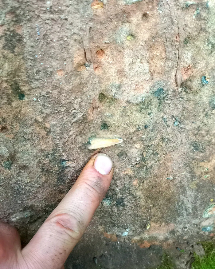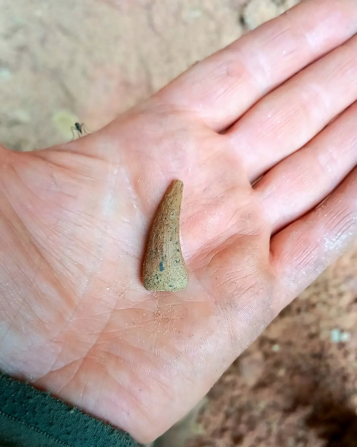 Рассказы про утёс на реке Ловати, где слоями залегают окаменевшие фрагменты девонских рыб, а их зубы просто торчат из песчаной стены, я слышал от местных жителей уже давно. Пару лет назад, даже предпринял попытку его отыскать, но, не имея чётких ориентиров, потерпел неудачу. Если честно, я не очень-то верил в существование такого "сказочного" места, но где-то в глубине подсознания не давала покоя мысль, а вдруг да? Месяц назад, обстоятельства сложились таким образом, что я опять оказался недалеко от Ловати и пообщался с человеком, который бывал на этом самом утёсе. А благодаря наличию мобильной связи, он дистанционно вывел меня на точку - береговой обрыв протяжённостью 400 метров, сложенный из девонского песчаника с прослойками глины и песка. Знаете, что первое я увидел, когда спустиля вниз? Зуб холоптихиуса, торчащий из песчаника! Потом ещё один, потом ещё. Они были везде - в прослойках песка вперемешку с обломками чешуи, костей, панцирей, в слоях плотного песчаника, в осыпях под стеной... Пять часов пролетели как один миг. У меня был культурно-палеонтологический шок, полные карманы окаменелостей и осознание того, что Эльдорадо всё-таки существует).