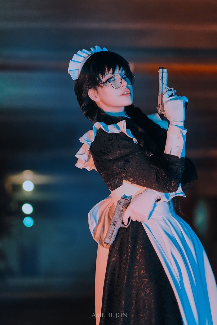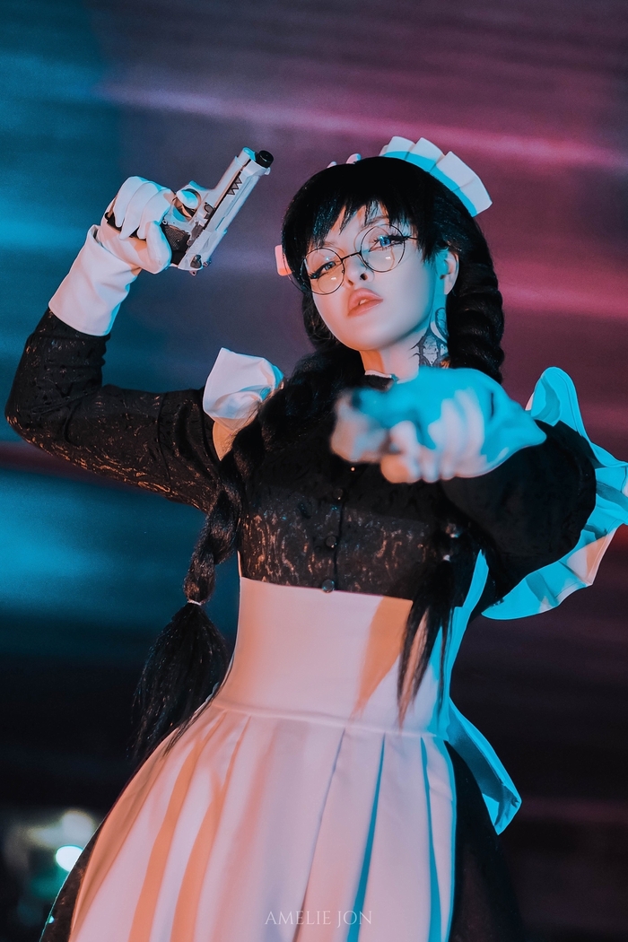 Чулочки и фарфоровая кожа, изящная волна черных волос, тоже характерные черты амплуа Диты фон Тиз. Цвет глаз я меняла с помощью линз, кожу высветлили тоном, грим добавляли на нос.