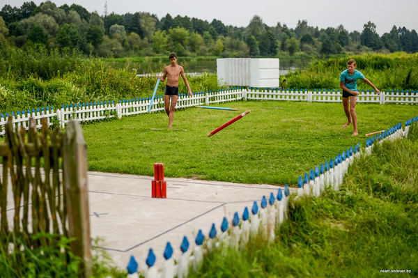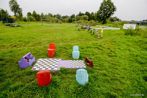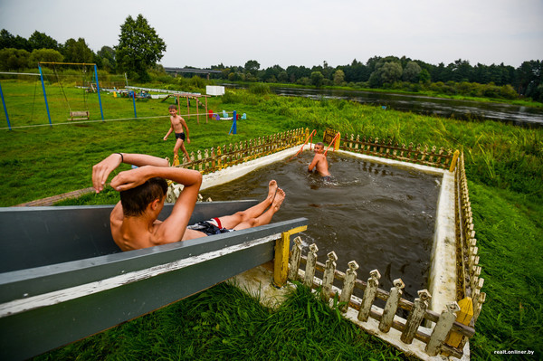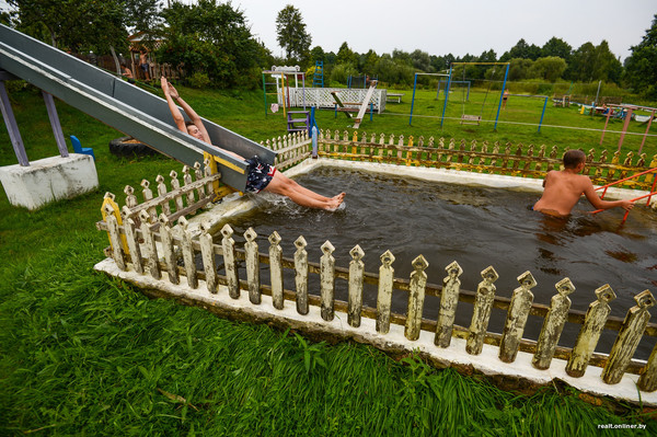 Аквапарком назвать зону отдыха на живописном берегу Немана можно, конечно, лишь с натяжкой. Из водных развлечений здесь — бассейн с горкой и мостики для прыжков в реку. Рядом обустроены площадки для футбола и волейбола, зона для игры в городки, качели, карусели, турники. Есть деревянная танцплощадка «Дедова дискотека», где по вечерам звучат песни из восьмидесятых. Все это сделано руками одного человека. Площадка открыта для всех. Купайся, играй, танцуй — все бесплатно. В какой еще деревне увидишь такое!