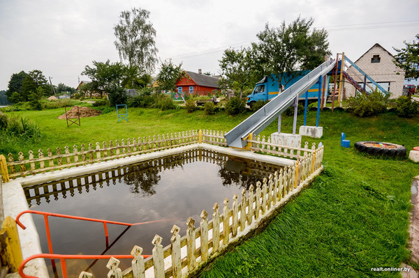 — Прислали ребят, журналиста из районки. Покосили траву, покрасили турники и забор, сделали снимки, отчитались. Ну, хоть какая-то помощь. Хотя я о помощи и не просил, лучше бы просто никто не мешал… Был у меня зампред Гродненского облисполкома. Обсуждали, что делать с бассейном и горкой. Может, до сноса дело и не дойдет. Хотят какой-то альтернативный вариант предложить. Может, заменят желоб на пластиковый, подкорректируют конструкцию — я не буду против. Я и сам хотел из стеклопластика сделать, так в одной фирме насчитали $3500. А пока никакой альтернативы не предложат, я сносить ничего не буду.
