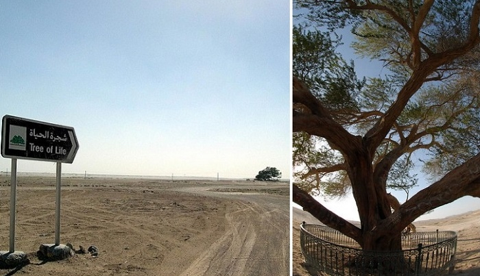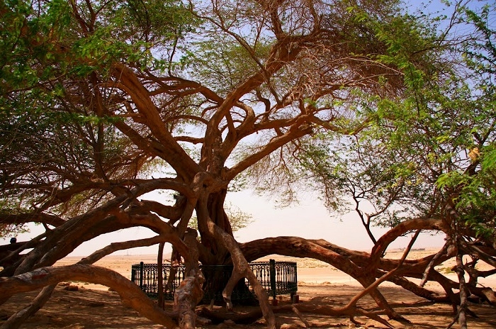 Тот же самый вид растёт сегодня в пустыне Бахрейна. Одинокое дерево на холме в сорока километрах от столицы, без видимого источника воды, посреди песка и температуры под сорок пять градусов. Его называют Шаджарат-аль-Хайат — «Дерево жизни». Ему более четырёхсот лет. Каждый год к нему приезжают 350 тысяч человек, чтобы посмотреть на загадку, которую наука до сих пор не разгадала полностью.