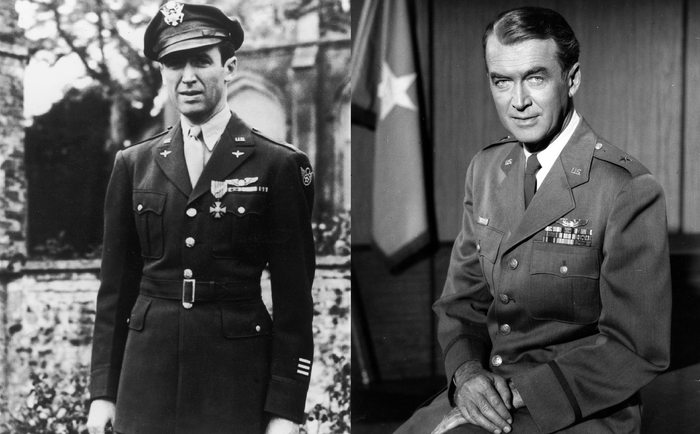 Судите сами: всего через три недели после получения премии "Оскар", в 1941 году он первым из голливудских актёров записывается на фронт, при чём лётчиком, тем самым подавая пример не только коллегам по цеху, но и массе американских граждан. С 12 тысяч до 21 доллара в месяц - таково изменение его дохода, что ничуть не смущает актёра. Нет, это не пиар для будущей всенародной любви и продвижения по карьере, он превосходно показывает себя как командир и умелый лётчик, а к концу войны носит звание полковника. Вернувшись на экраны он продолжает деятельность в ВВС, а в 1966 году участвует в разведывательной миссии над Северным Вьетнамом. Официально он выходит в отставку в 1968 году в звании бригадного генерала. Получив за свою жизнь военных наград чуть ли не больше, чем кинематографических, он, фактически - самый высокопоставленный военный, когда-либо работавший на индустрию развлечений США.