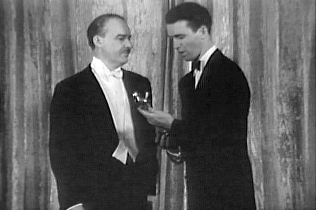Если герой предыдущего поста, Клинт Иствуд, предстаёт пред нами образцом американца сурового, американца-консерватора, человека старой закалки, неприемлющего современные веяния, честным патриотом, признающим недостатки своей страны и борющимся с ними теми силами что есть, потому как того требует эпоха, то Джеймс Стюарт, родившийся в период, называемый "эрой прогрессизма" и начавший карьеру во времена Великой депрессии был на экране и в жизни американцем другого толка. Американцем добрым. Простым хорошим человеком, истинным семьянином, символом честности и порядочности, свято верящим до последнего в величие нации и строящим её собственными руками, давая зрителям то, чего им так не хватало в тяжёлые времена и являясь для них примером поведения, эталоном человека того времени.