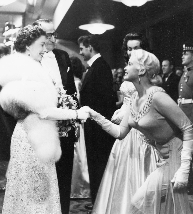 Мэнсфилд надела розовое атласное платье с открытой спиной и глубоким глубоким вырезом. Во время обеда женщин запечатлели вместе, когда Софи смотрит на открытое декольте Джейн. Мэнсфилд не надела бюстгальтер, и ее декольте было слишком откровенным даже для ее яркой фигуры.