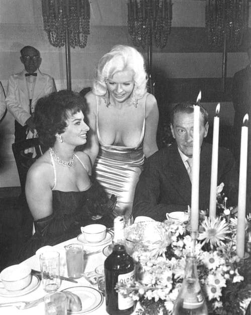 Как рассказывала Софи Лорен, Мэнсфилд опоздала на обед, а появившись, тут же подсела за столики, который заняли Лорен с ее спутником Клифтоном Уэббом.
