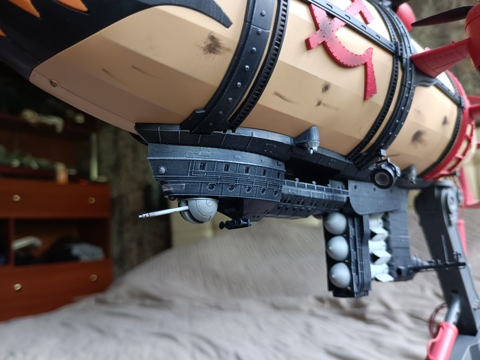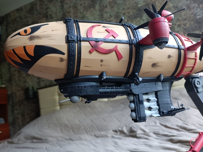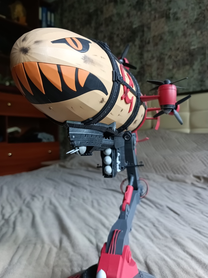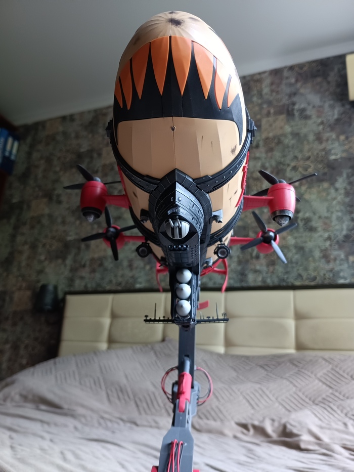 Собрал,смотрю на него.Не.че то как то бледненько.Шило в жопе покоя не дает.это ж не выставочный "граф Цеппелин",а боевой дирижабль!который плюет(чаще всего бомбами) на зенитную оборону,ввиду убертолстой шкуры.добавил ему боевых шрамов и потертостей.А по хорошему надо было целиком красить.Где то рваную обшивку добавить с торчащими шпангоутами.мож даже дыму добавить.стыки,опять же, зачистить/зашпаклевать можно было до покраски.Но,что есть,то есть.
