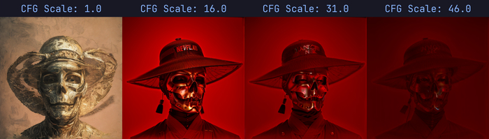 Метод Classifier-Free Guidance Scale использует безусловную и условную генерации, которые перемножаются друг с другом. Грубо говоря, сначала создается изображение без учета текстовой подсказки, а затем с ней. Чем выше CFG Scale, тем больше будет доминировать условное изображение.