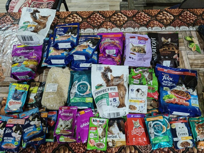 Нам собрали пеленки, вкусняшки, сухие и влажные корма, игрушки и даже небольшой но уютный домик для кошек! Мы очень и очень благодарны всем детям собиравшим эти подарочки для наших пушистиков! Очень благодарны их родителям, которые помогли приобрести и донести всё купленное! Благодарны руководству и всем сотрудникам Дома Творчества "Октябрьский" за то что позволили инициатору всё это организовать и всячески помогать! И отдельно девушке по имени Ксения, которая всё это и организовала с разрешения руководства! Спасибо ВСЕМ ВАМ огромное! Благодаря вам и таким людям как вы, у нас ещё не пропала вера в людскую доброту!