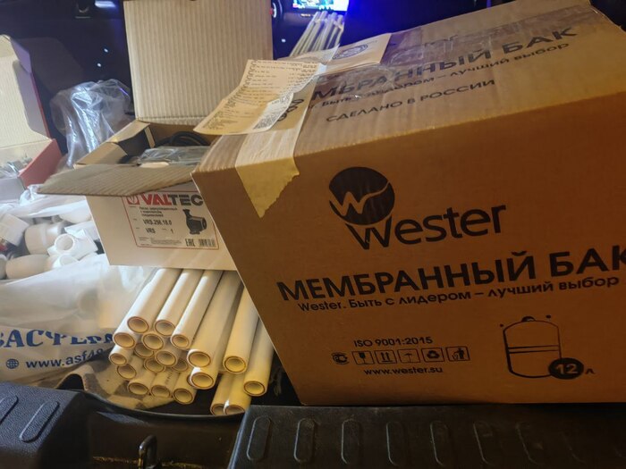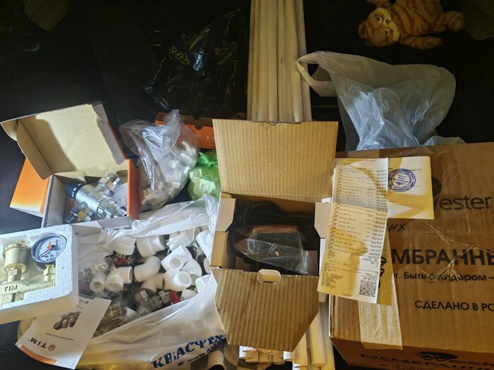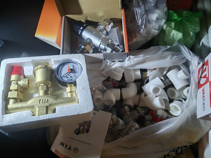 В конце прошлой недели посчитал что ещё не хватает для отопления. Записал и вчера поехал закупать всё. Спасибо за помощь в покупке всего этого доброму другу нашего приюта! Вышло очень много всего и сами бы мы не справились! И хотя покупать ещё надо и дымовые трубы и стабилизатор, дело потихоньку движется.