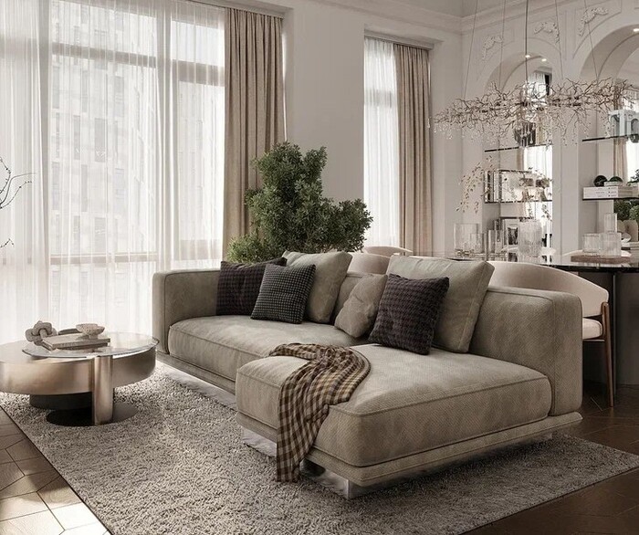 Дизайн интерьера квартиры в ЖК «Альпен», гостиная в стиле современной классики от студии Artum.
