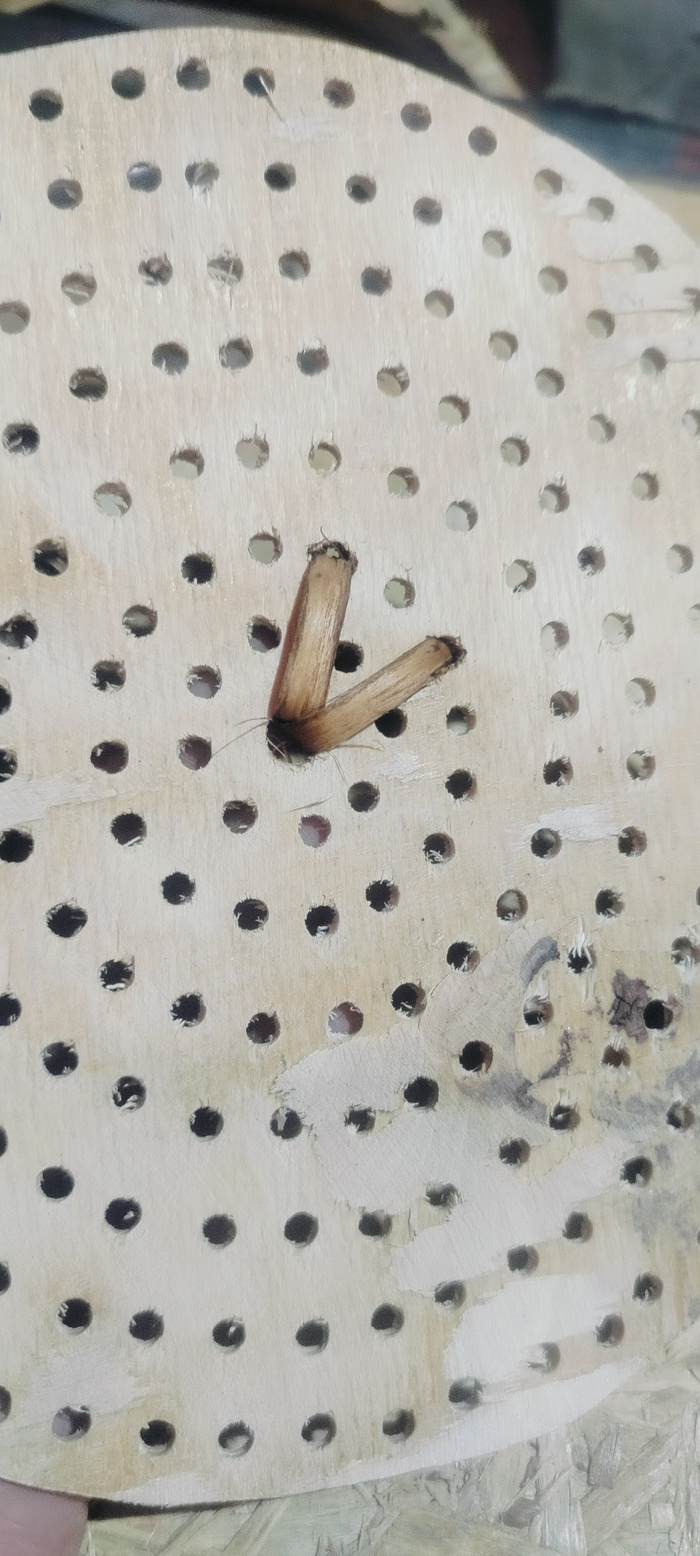Внимание. Если не смогли прострогать ленту как здесь Ремесло. Стружка для растопки увеличьте диаметр всех отверстий