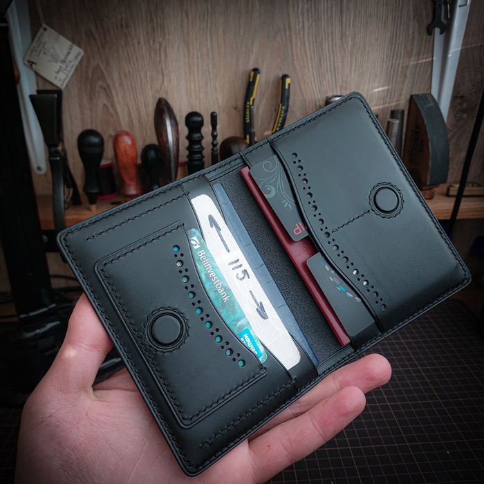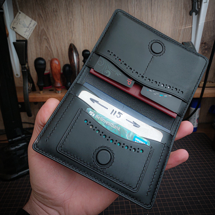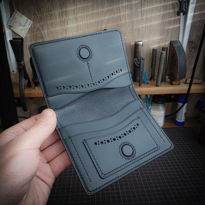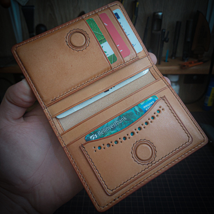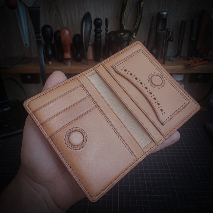В работе использовал кожу растительного дубления, в толщине до 1.5мм, нить 0.4мм, магниты 15мм, торцы: токонол + колумбус, шов ручной.