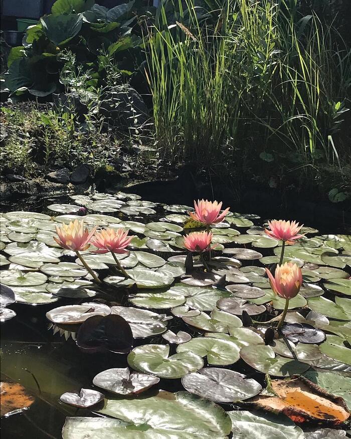 Где-то ниже в моих постах, есть история, о том как мы вкапывали этот пруд. Почти сразу же мы запустили туда 5 золотых рыбов, и тогда же посадили кувшинку “Блек Принцесс”.