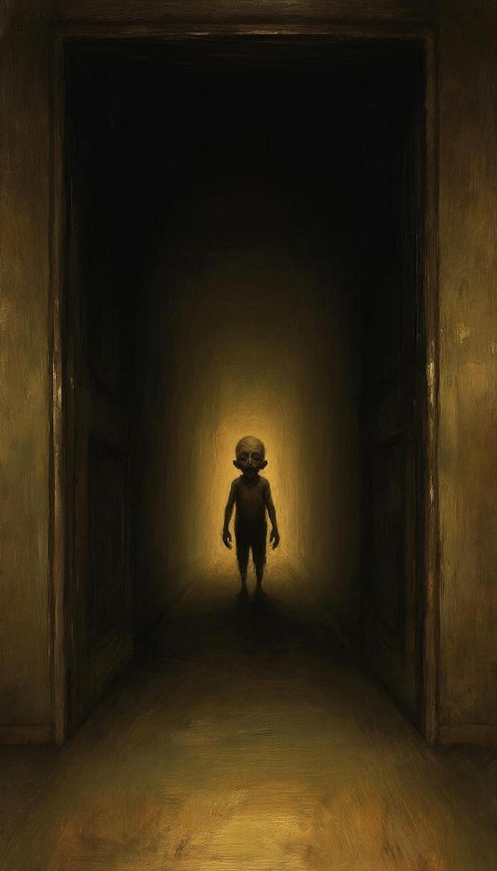 И вот, на самом пороге топот и смех прекратились. Пес начал потявкивать смотря то в коридор, то на меня. Сердце колотилось, я быстро подбежал к собаке и взял его на руки. Уставившись в тьму коридора готовился совершить марш-бросок до выключателя, который находился у входной двери, с другой стороны коридора.
