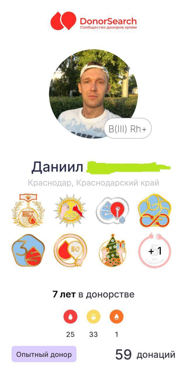 Привет👋 Я Данил из города Краснодар. Простой обычный парень. Сегодня у меня был очередной поход в центр переливания донорской крови — уже 59-й по счёту. Сам иногда не верю в эту цифру.