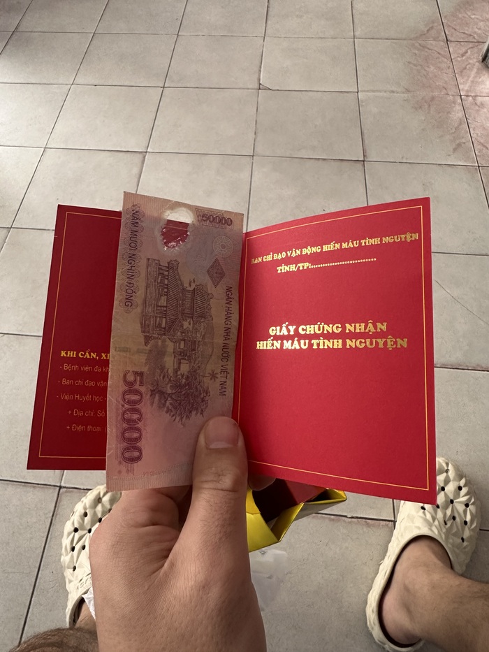 Ну и после сдачи выдают книжечку, что ты сдавал кровь, 50000 донгов = 150 рублей и еще упаковку экстракта ласточкиных гнезд.