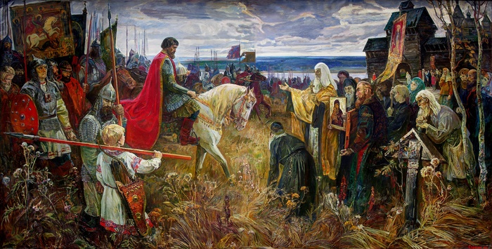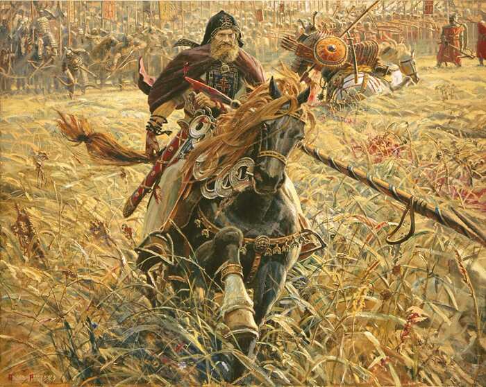 В поход князь идет уже зная о приближении к Москве разозленного ордынского хана Мамая с огромным войском. Но к этому времени Дмитрий смог собрать полки из земель литовских, ярославских, устюжских, ростовских и даже отдаленных белозерских. Он уже опытный политик и воин. И на первый масштабный бой с ордынцами Донского благословляет игумен Сергий Радонежский. Более того, отправляет в помощь князю двух иноков - Пересвета и Ослябя.