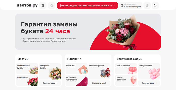 Гарантия замены букета в случае неудовлетворённости клиента качеством