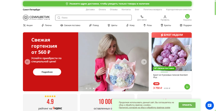 Цветомания представляет собой крупную петербургскую сеть цветочных салонов. Компания позиционирует себя не просто как розничную торговую точку, а как комплексный сервис доставки флористических композиций, объединяющий собственное производство с профессиональной логистикой. Данный подход позволяет контролировать качество продукции на всех этапах от посадки до доставки конечному потребителю.